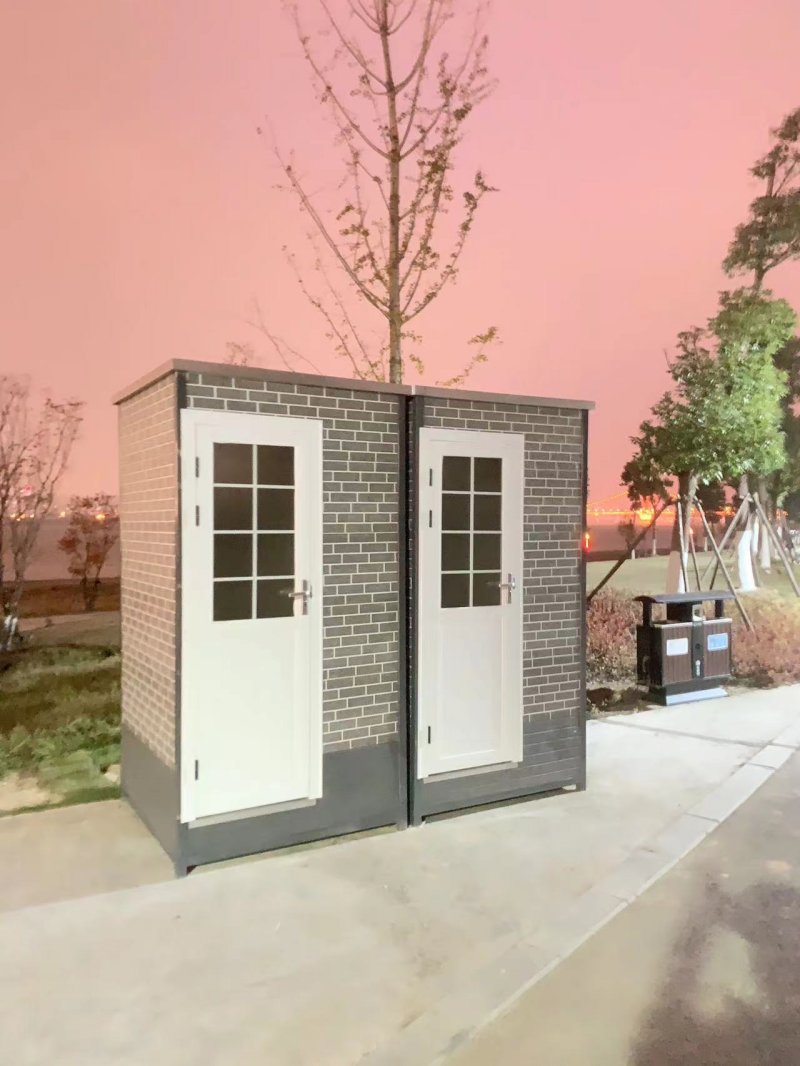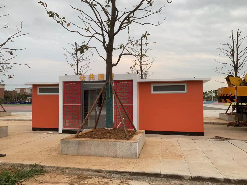 拼裝廁所;在廠里做好各個廁所部件,再到現(xiàn)場組裝在一齊,適合不易運輸?shù)拇笮蛶_@座箱式廁所,女廁5個蹲位內配工具間,男廁2個蹲位+2小便斗,第三衛(wèi)生間由殘疾馬桶、助力洗手盆和兒童馬桶、兒童洗手盆外加嬰兒臺等設施。廁所前后有窗,通風采光,前部走廊裝有屋檐,防雨防曬。此廁所位于公路綠道邊,整體大氣,功能齊全,造型美觀,是一道難得的靚麗景觀!